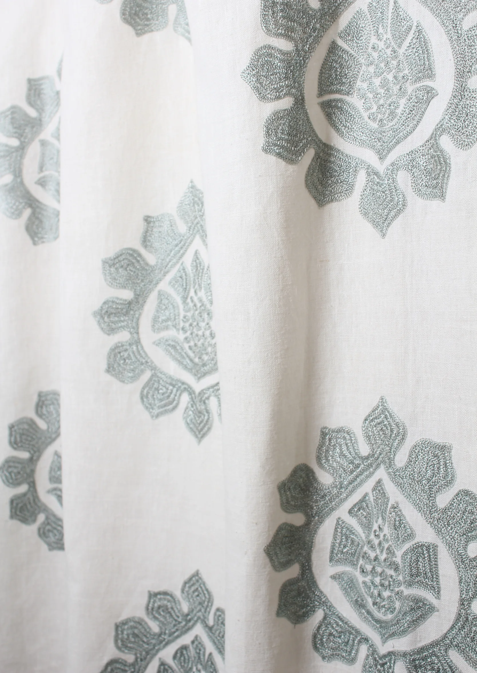 View fullsize marquesas Product Details: Number: PA100Colors: Seafoam (14), Raspberry (6), Sea Glass (24) Width: 54"Repeat: 16"Content:100% Linen with 100% Rayon Embroidery Country: India View fullsize View fullsize